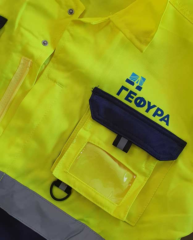 Τυπώνουμε το λογότυπό σας με τύπωμα DTF ή κέντημα σε μπλουζάκια, μπουφάν, αντιανεμικά, ποδιές εργασίας και οποιοδήποτε ένδυμα εργασίας διαλέξετε.